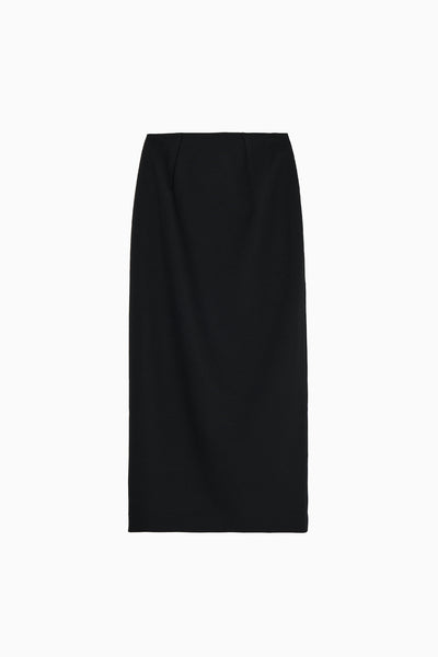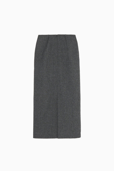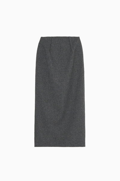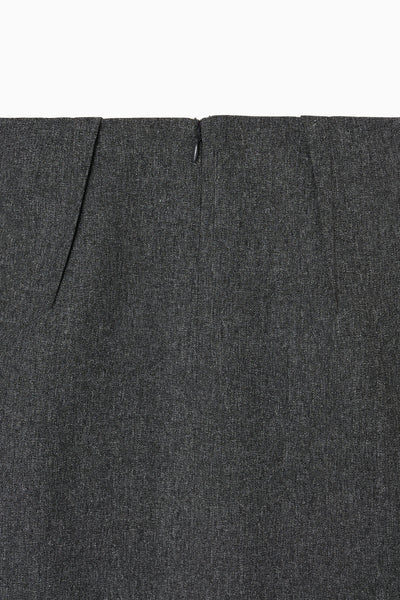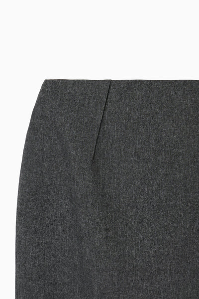 立体的なフロントダーツと表出しのディテールが印象的なメランジタイトスカート。