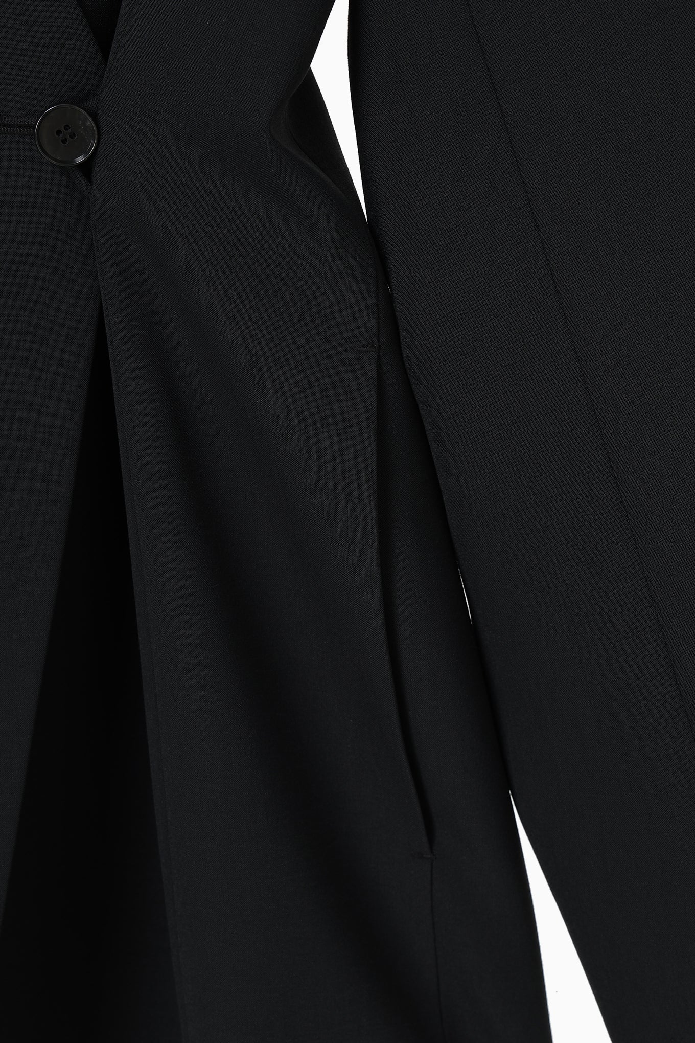 ウエストの釦を止めることで構築的なタイトシルエット、外して着用することでゆとりのあるオーバーシルエットと、表情の違う着こなしが楽しめます。