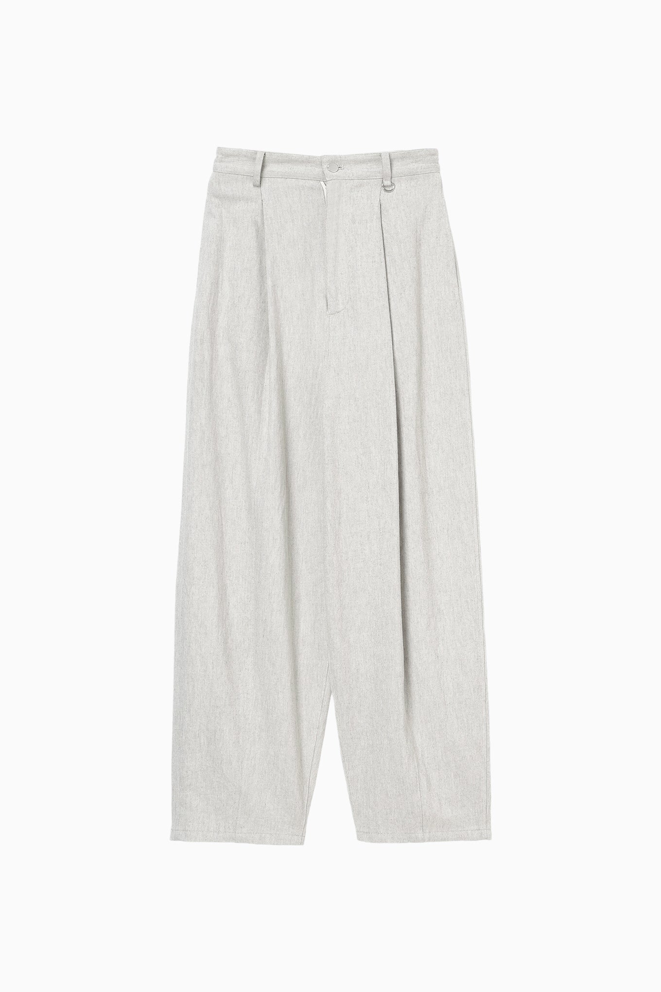フロントのタックが腰回りにゆとりを持たせ、リラックス感のある佇まいに。