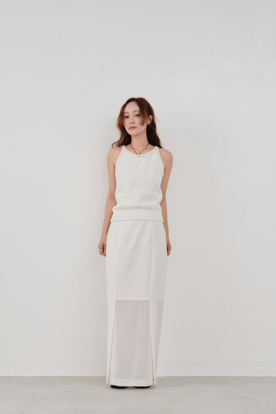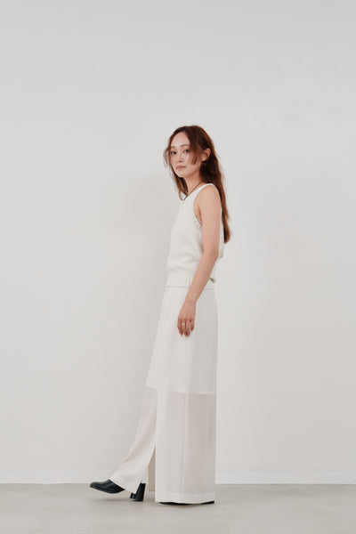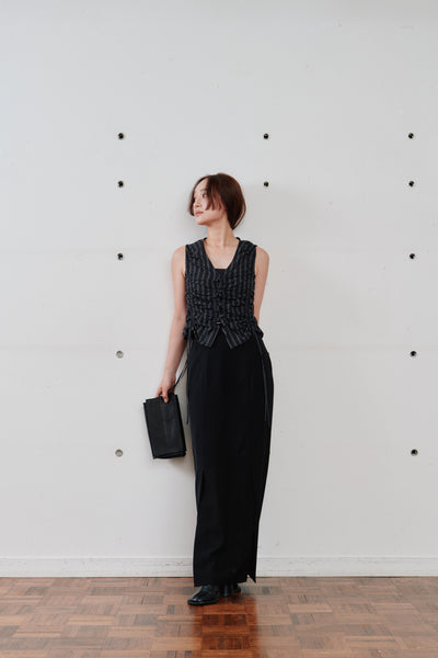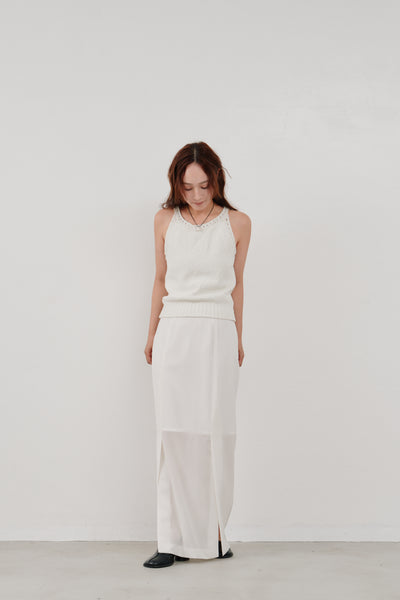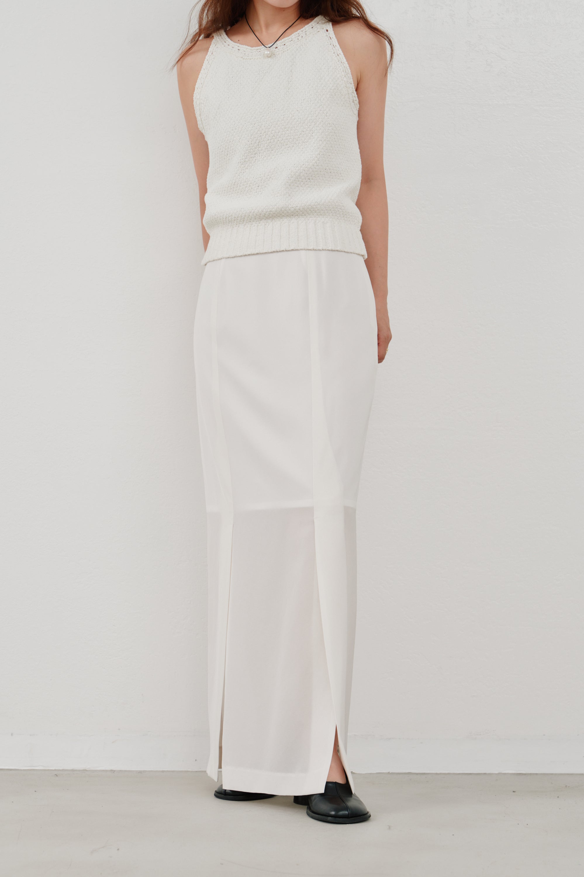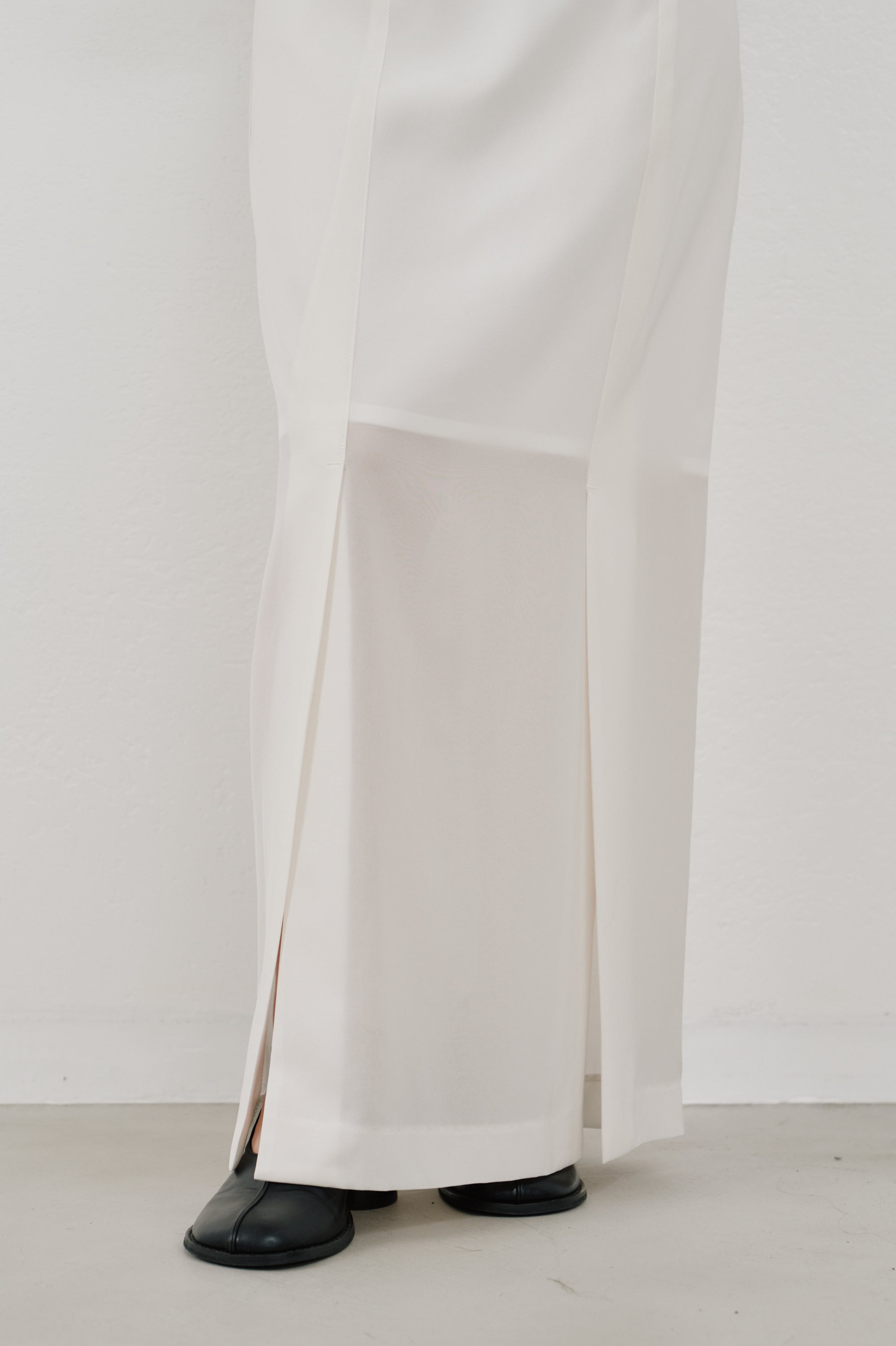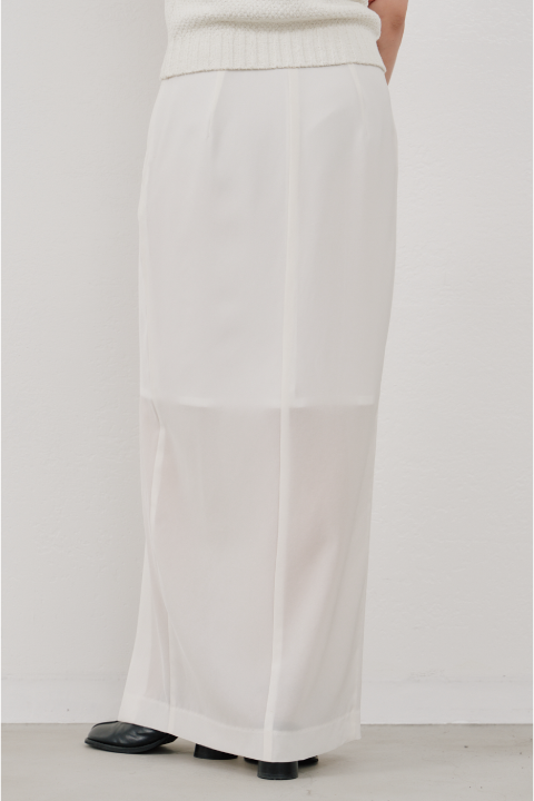 フロントに施されたスリットは、足元に動きを与えつつさりげない肌見せも。