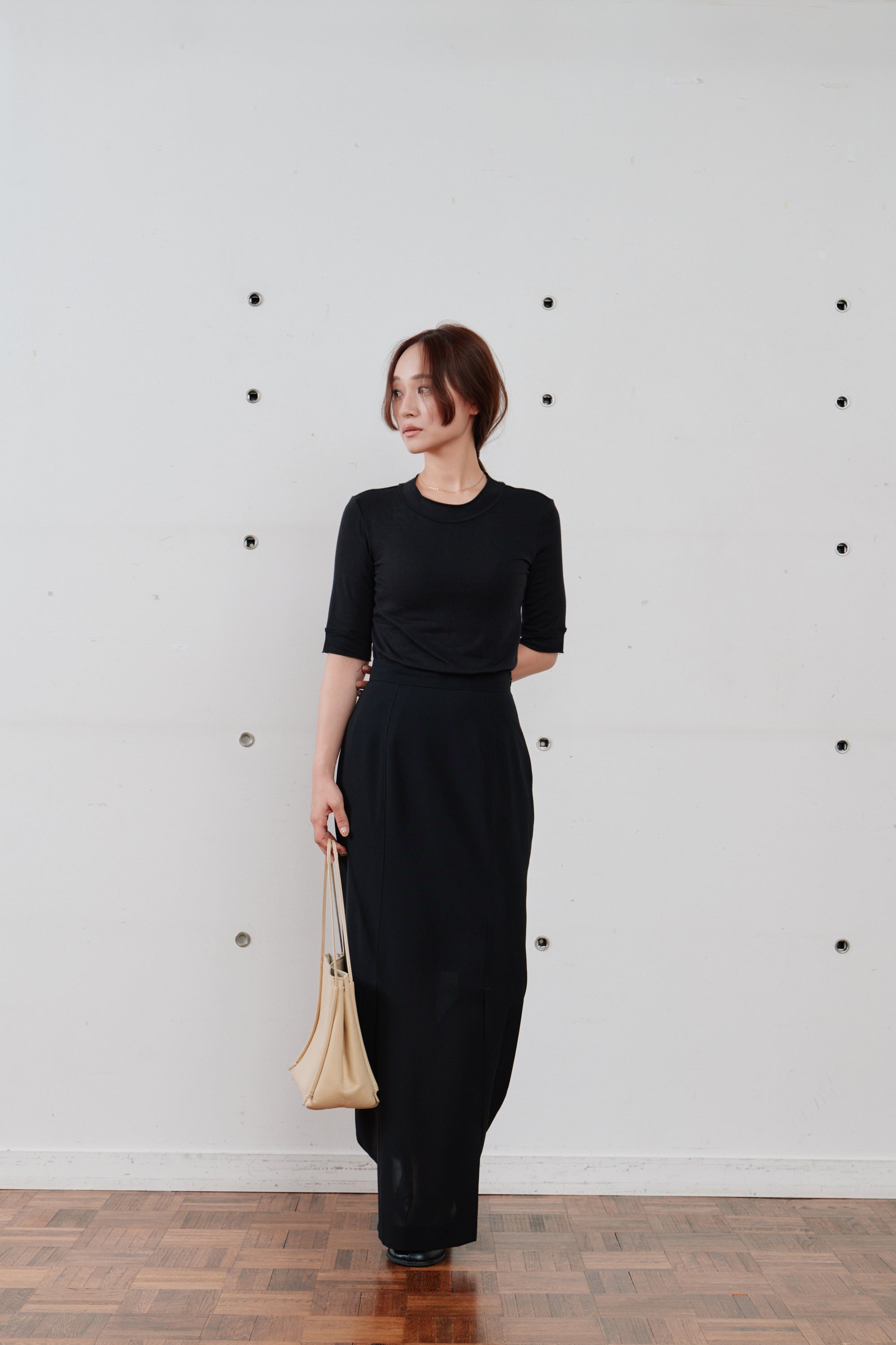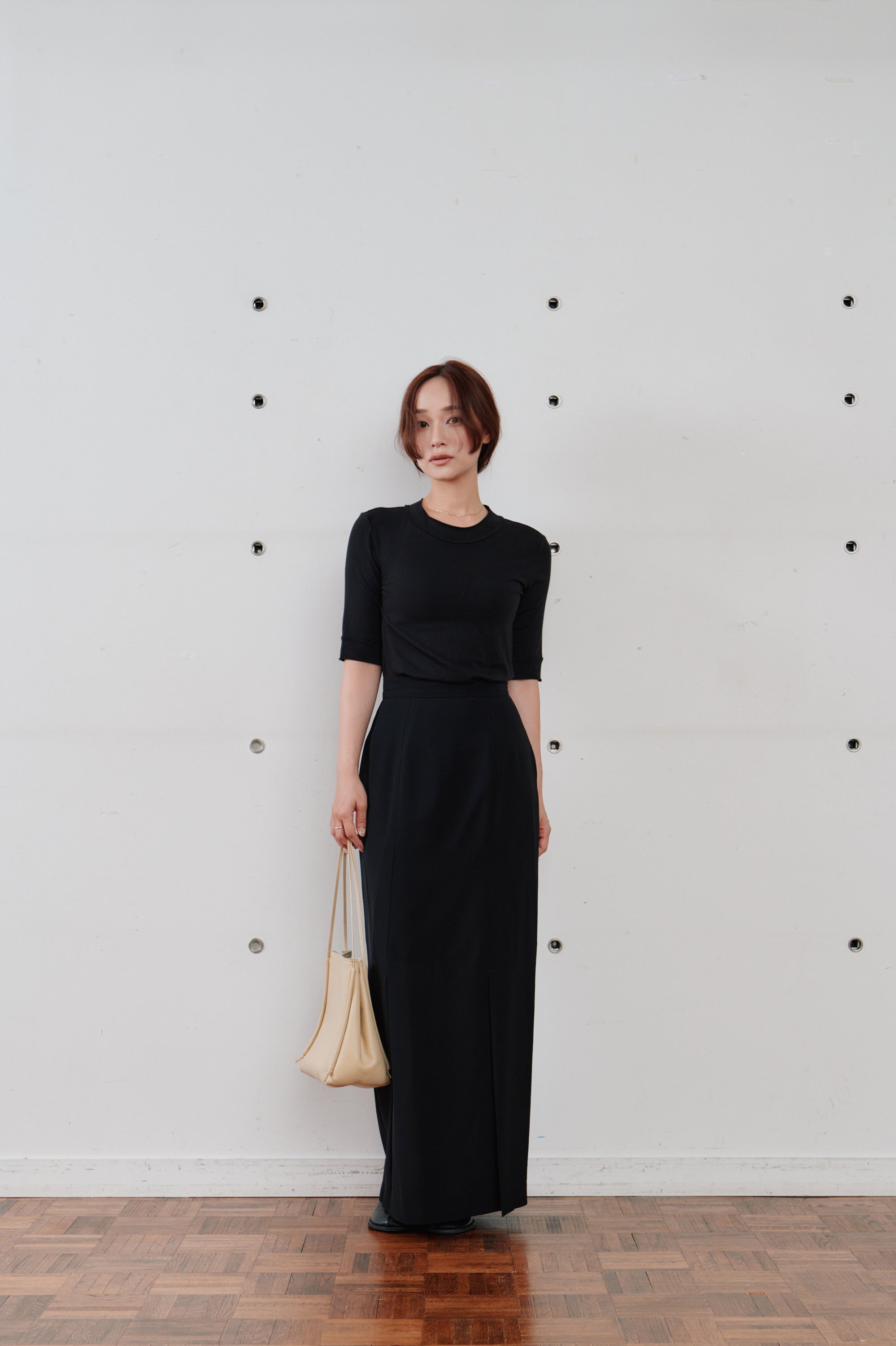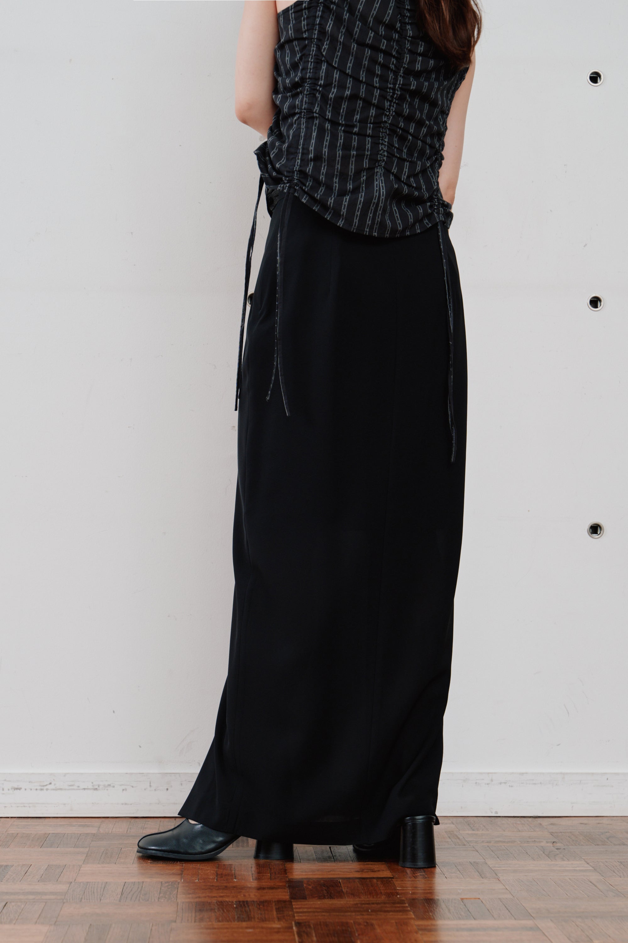 日常に上質なニュアンスを添える、ストレートラインのロングスカート。